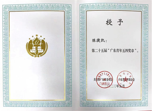 日前,中國科學(xué)院廣州生物醫(yī)藥與健康研究院陳捷凱研究員獲得“第二十五屆廣東省五四青年獎(jiǎng)?wù)隆保▊€(gè)人)表彰。