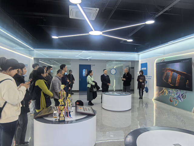 活動(dòng)中,雙方分別介紹了支部的建設(shè)情況,并圍繞黨建活動(dòng)、青年活動(dòng)、科研項(xiàng)目、科研平臺(tái)、學(xué)術(shù)交流等展開交流。廣州健康院黨委書記、副院長(zhǎng)段子淵表示,通過支部的合作共建,將進(jìn)一步推動(dòng)基礎(chǔ)研究與臨床研究深度融合,加快健康院研究成果臨床轉(zhuǎn)化和應(yīng)用。廣醫(yī)五院副院長(zhǎng)秦大江介紹了醫(yī)院的建設(shè)情況并分享其在廣州健康院工作的經(jīng)歷。他談到,廣州健康院和廣醫(yī)五院擁有良好的合作基礎(chǔ),相信通過支部合作,必能提升醫(yī)院的科研創(chuàng)新能力,助推高質(zhì)量發(fā)展。廣醫(yī)五院機(jī)關(guān)第三黨支部還參觀了廣州健康院科學(xué)家精神教育基地、分析測(cè)試中心和生物醫(yī)學(xué)數(shù)據(jù)和超算中心等。