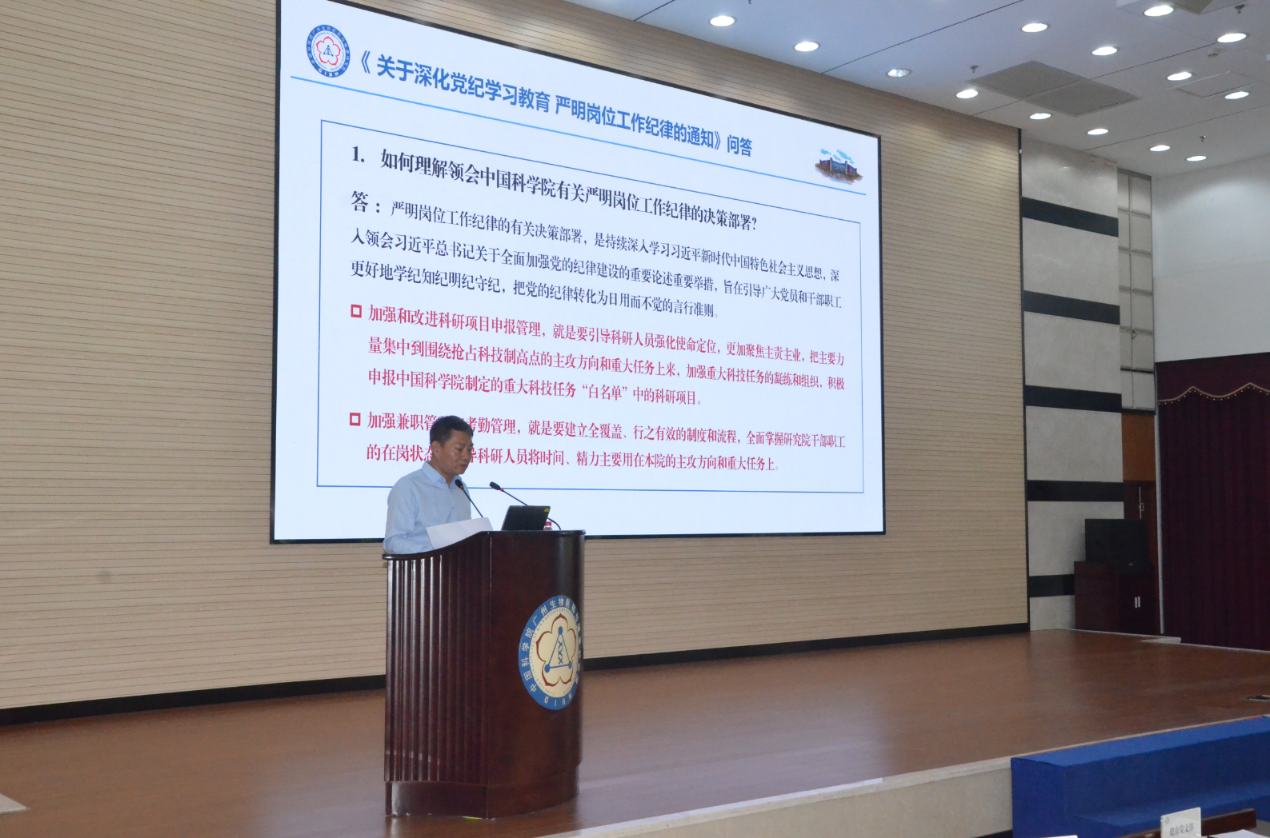 會上,張鴻翔詳細(xì)傳達(dá)并解讀了中國科學(xué)院《關(guān)于深化黨紀(jì)學(xué)習(xí)教育嚴(yán)明崗位工作紀(jì)律通知》和《關(guān)于推進(jìn)黨紀(jì)學(xué)習(xí)教育常態(tài)化長效化的通知》的新精神和新要求,并對院里關(guān)于開展“深化黨紀(jì)學(xué)習(xí)教育嚴(yán)明崗位工作紀(jì)律”專項(xiàng)工作的決策部署、具體要求和研究院的落實(shí)情況進(jìn)行了全面深入的介紹和闡述。