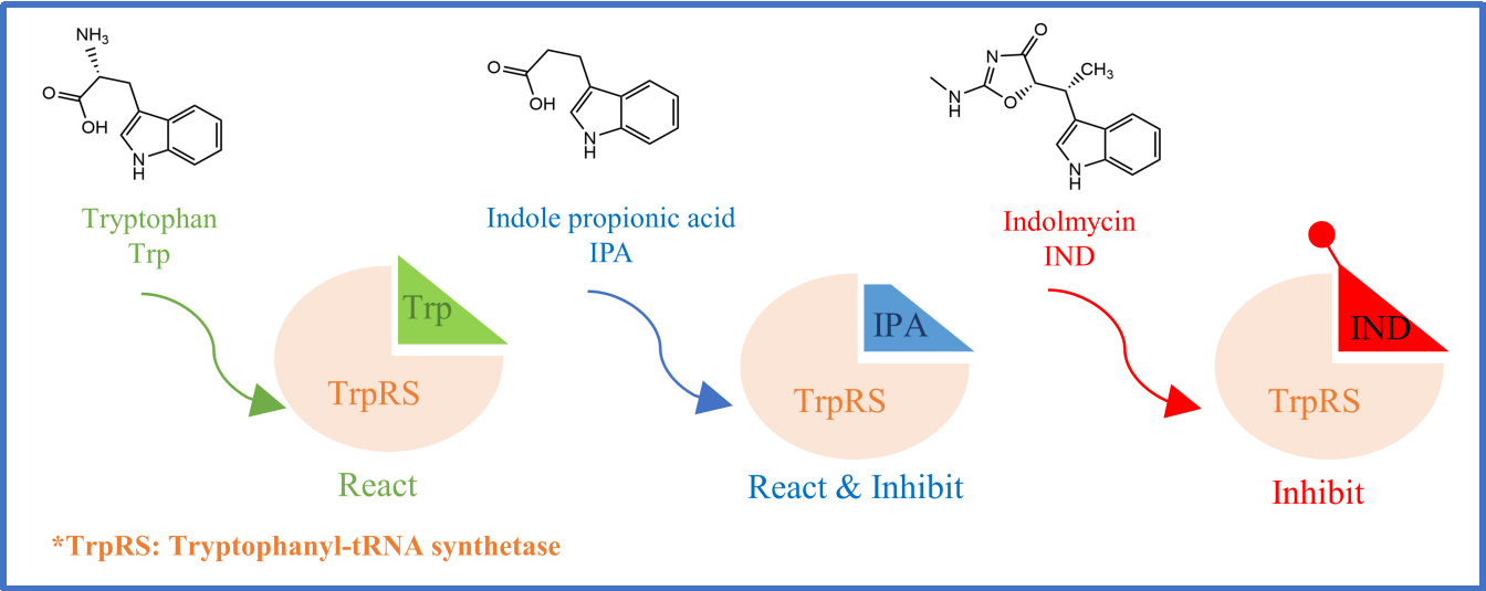近日,中國科學院廣州生物醫(yī)藥與健康研究院張?zhí)煊钫n題組在ACS Infectious Disease期刊發(fā)表了題為“Indole propionic acid disturbs the normal function of tryptophanyl-tRNA synthetase?in Mycobacterium tuberculosis”的研究成果,該研究揭示了腸道菌群代謝產(chǎn)物吲哚丙酸(IPA)可以通過干擾結(jié)核分枝桿菌(簡稱結(jié)核菌)色氨酰-tRNA合成酶(TrpRS)的正常功能來發(fā)揮其對分枝桿菌的抑制作用。