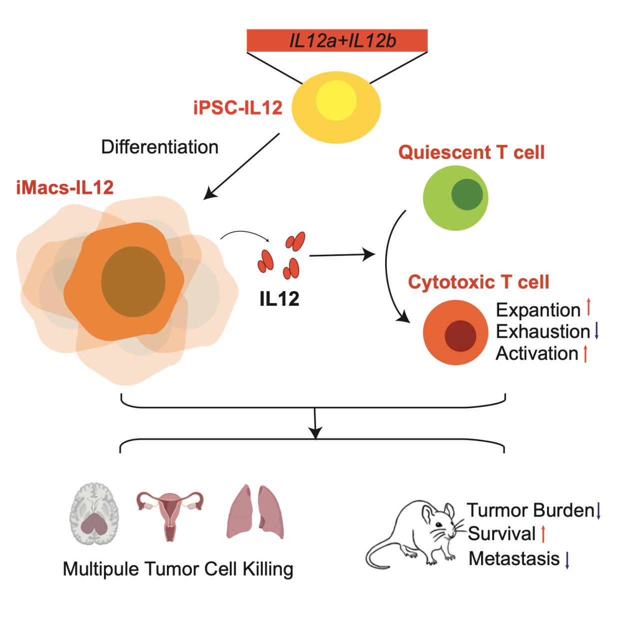 人多能干細(xì)胞來(lái)源的分泌IL12巨噬細(xì)胞抗腫瘤示意圖
