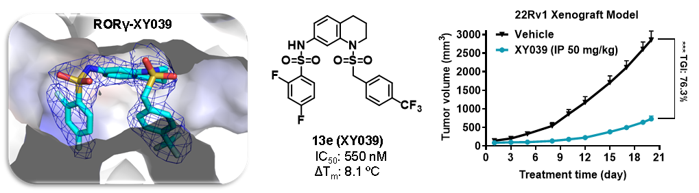 近日,中國科學院廣州生物醫(yī)藥與健康研究院許永研究員團隊在Nature旗下國際學術期刊Acta Pharmacologica Sinica發(fā)表題為“Discovery and pharmacological characterization of 1,2,3,4-tetrahydroquinoline derivatives as RORγ inverse agonists against prostate cancer”的研究論文,報道了針對新靶點RORγ的新骨架反向激動劑及其抗前列腺癌活性和作用機制。