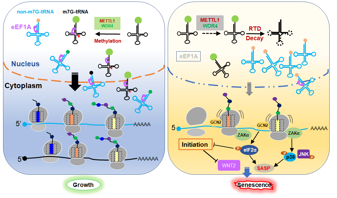 圖1?揭示了METTL1介導(dǎo)的tRNA修飾調(diào)控衰老的作用模式