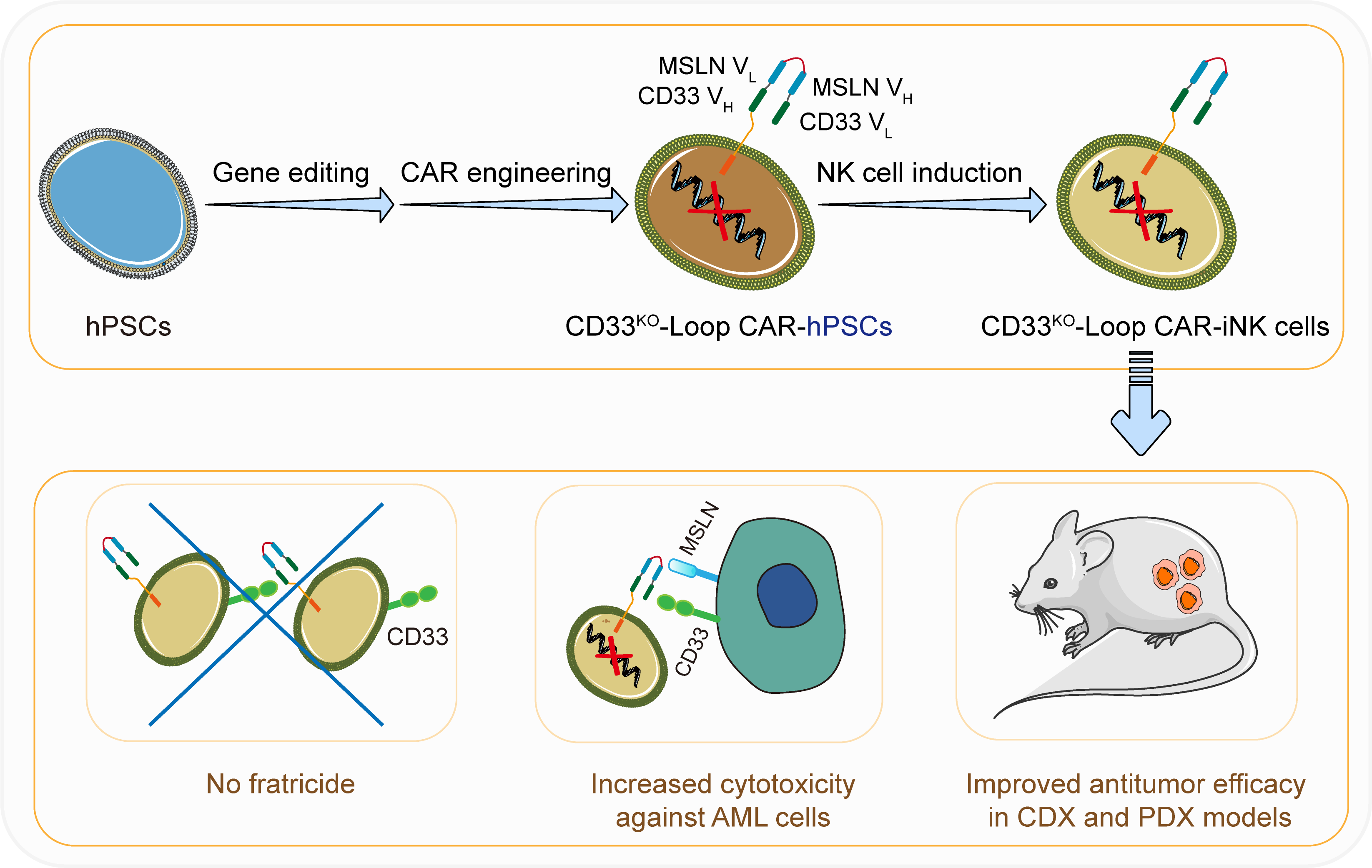 圖1 CD33KO-CD33-MSLN Loop CAR-iNK細(xì)胞精準(zhǔn)靶向治療急性髓系白血病