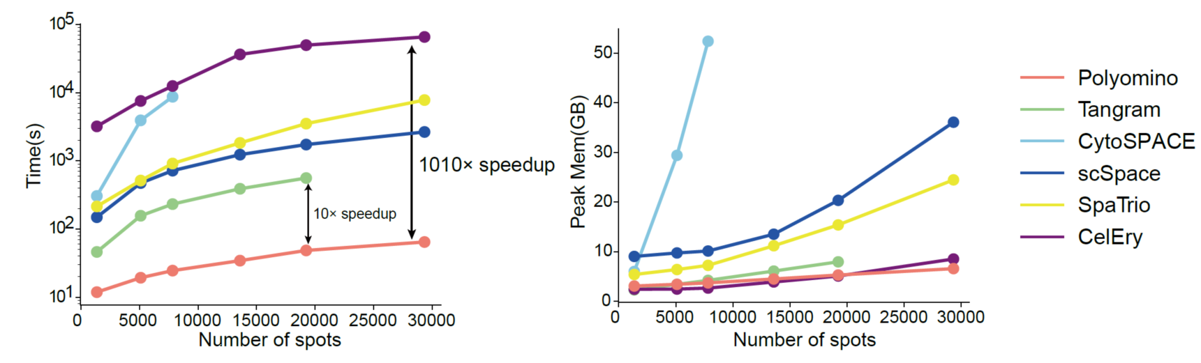 Polyomino通過(guò)多層區(qū)域約束實(shí)現(xiàn)單細(xì)胞空間定位,顯著提高了計(jì)算效率