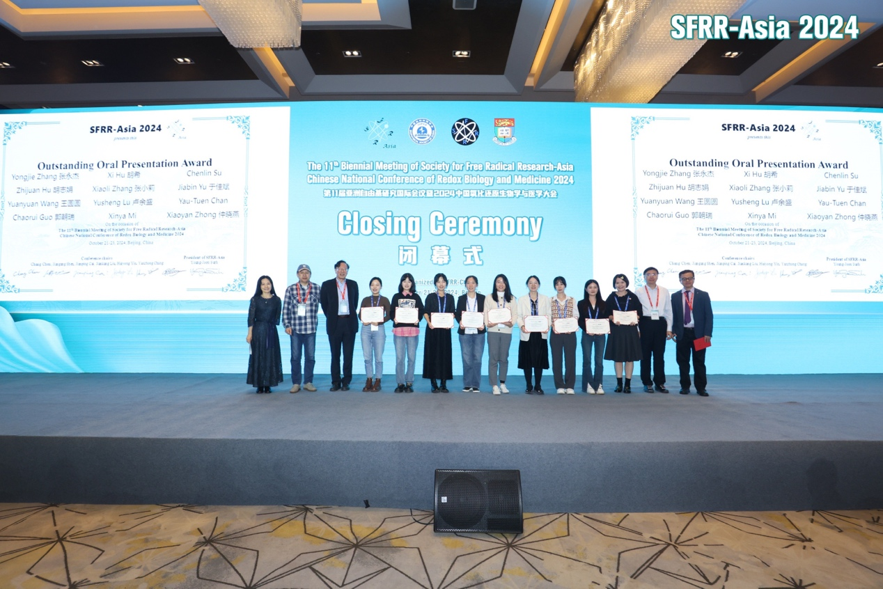 10月21日,第十一屆亞洲自由基研究國際會議暨2024中國氧化還原生物學與醫(yī)學大會在北京召開,此次大會頒發(fā)了“SFRR-Asia 亞洲青年研究員獎(SFRR Asia Young Investigator Award,YIA)”以及“優(yōu)秀口頭報告獎(Outstanding Oral Presentation Award)”等獎項。