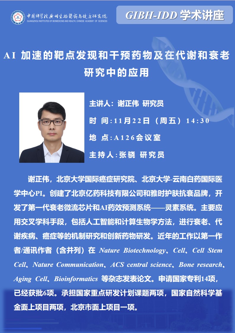 2024年11月22日GIBH-IDD學術講座:AI 加速的靶點發(fā)現(xiàn)和干預藥物及在代謝和衰老研究中的應用