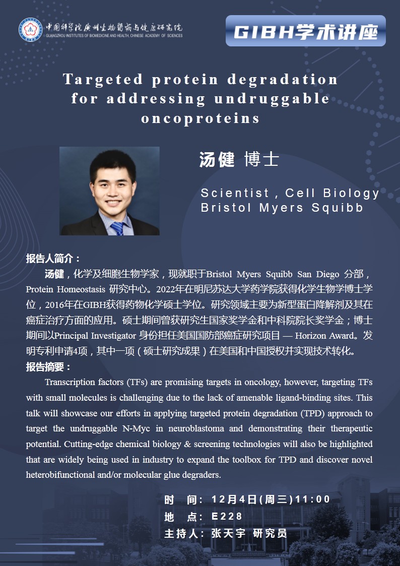 2024年12月4日學(xué)術(shù)講座:Targeted protein degradation for addressing undruggable oncoproteins