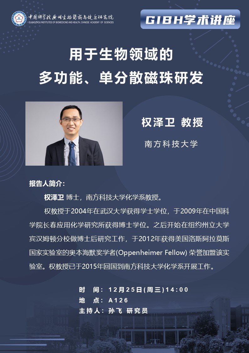 2024年12月25日學術(shù)講座:用于生物領域的多功能、單分散磁珠研發(fā)