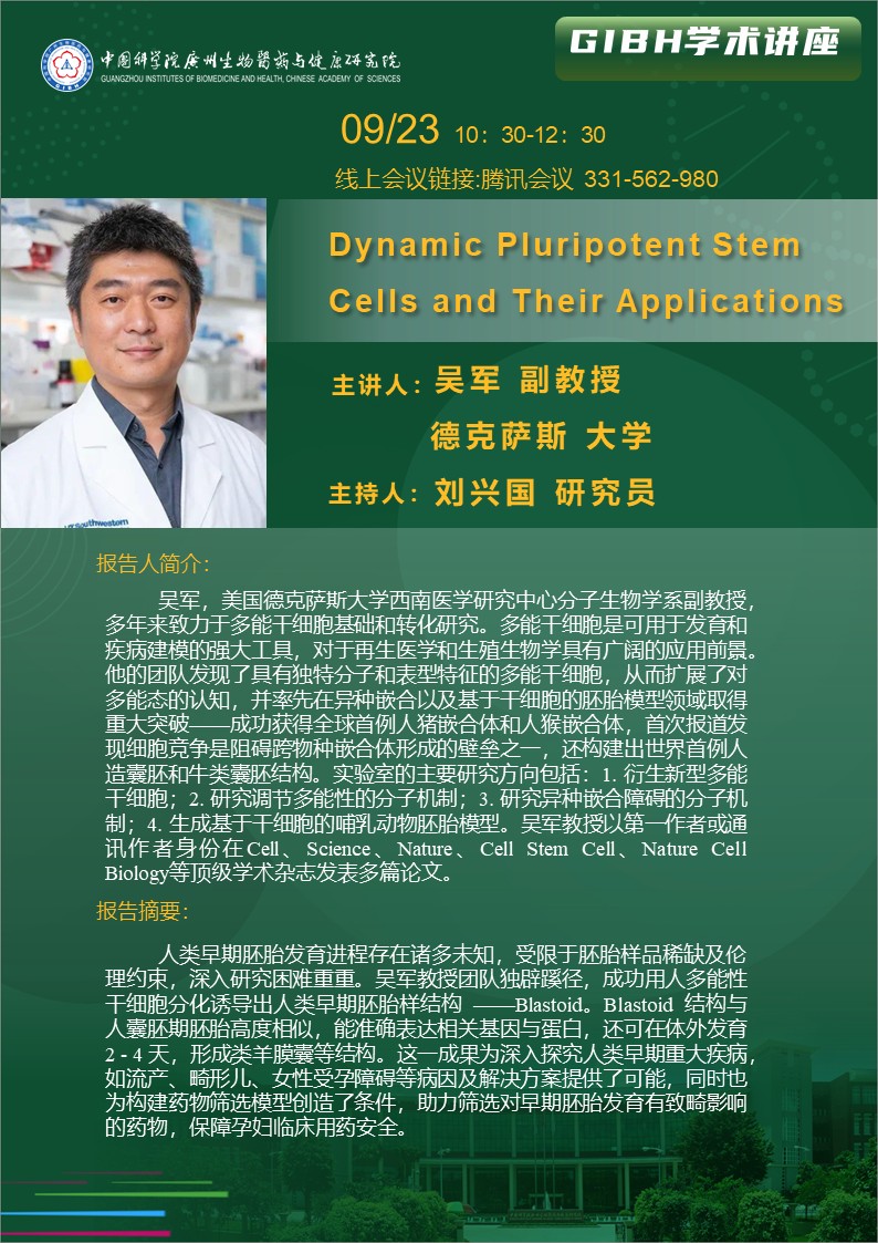2025年9月23日學(xué)術(shù)講座:Dynamic Pluripotent Stem Cells and Their Applications