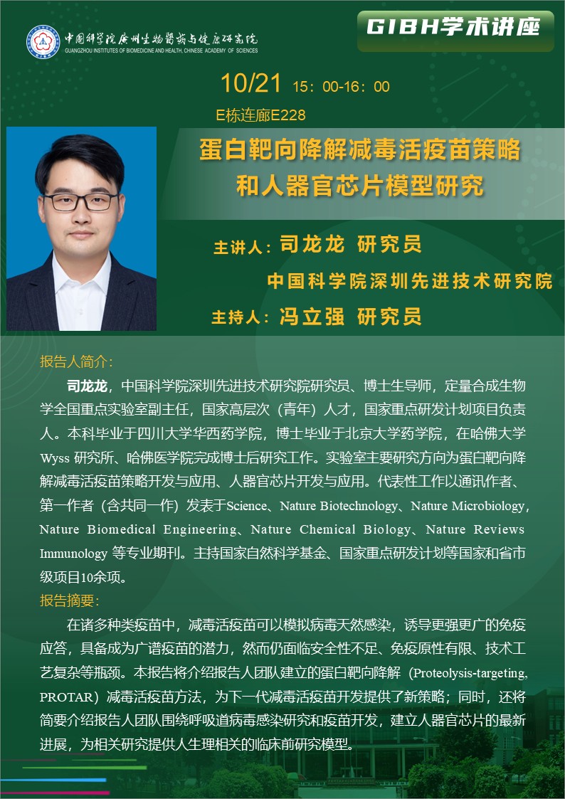 2025年10月21日學術(shù)講座: 蛋白靶向降解減毒活疫苗策略和人器官芯片模型研究