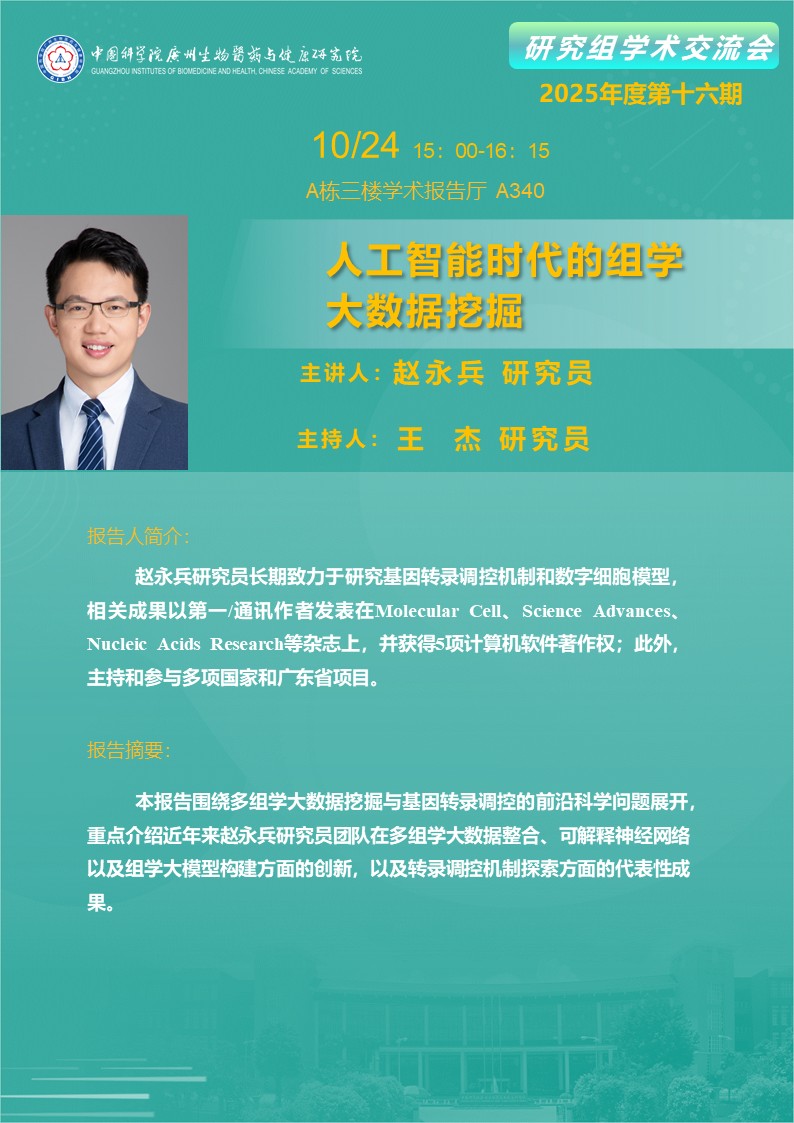 2025年10月24日研究組學(xué)術(shù)交流會(huì)(2025年度第十六期):人工智能時(shí)代的組學(xué)大數(shù)據(jù)挖掘