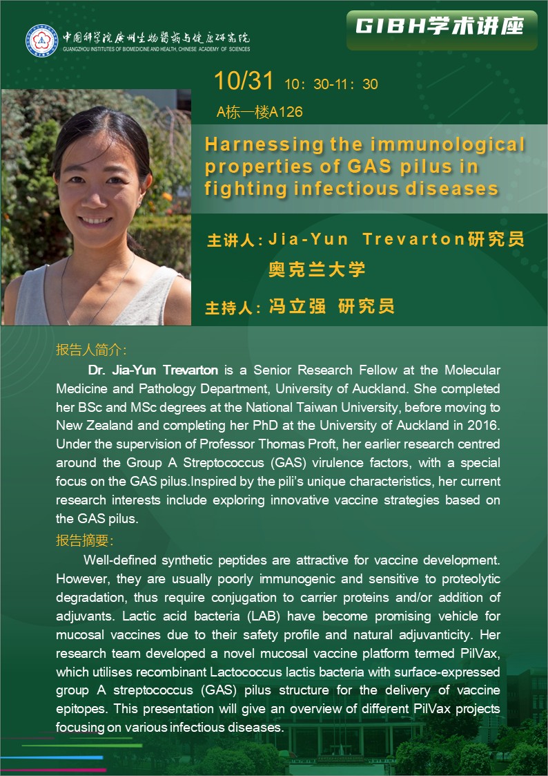 2025年10月31日學術講座:Harnessing the immunological properties of GAS pilus in fighting infectious diseases